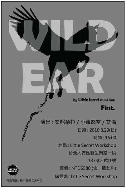 二十九號下午三點 "Wild Ear mini show",這是個不插電式的音樂會,在假日的午後一起來享受慵懶的氣氛吧。